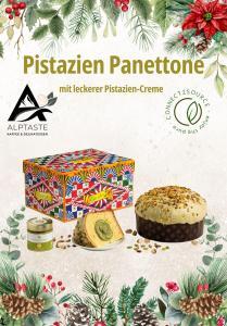 Der Edle Kuchen aus Italien – eine Komposition feinster Backkunst. Sein außergewöhnlich zarter, luftiger Teig vereint sich mit einer samtigen Pistazienglasur zu einem vollendeten Genussmoment. Die beigefügte Pistaziencreme rundet das Erlebnis mit ihrer cremigen Textur und intensiv-nussigen Note perfekt ab.